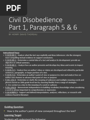 The Thoreau civil disobedience pDF is a great way to learn about the history of civil disobedience. The paper focuses on Henry David Thoreau and his work with civil. Know Thoreau primarily as the author of the book Walden or Life in the Woods 1854 but it is Civil Disobedience that established his reputation in the wider political world.